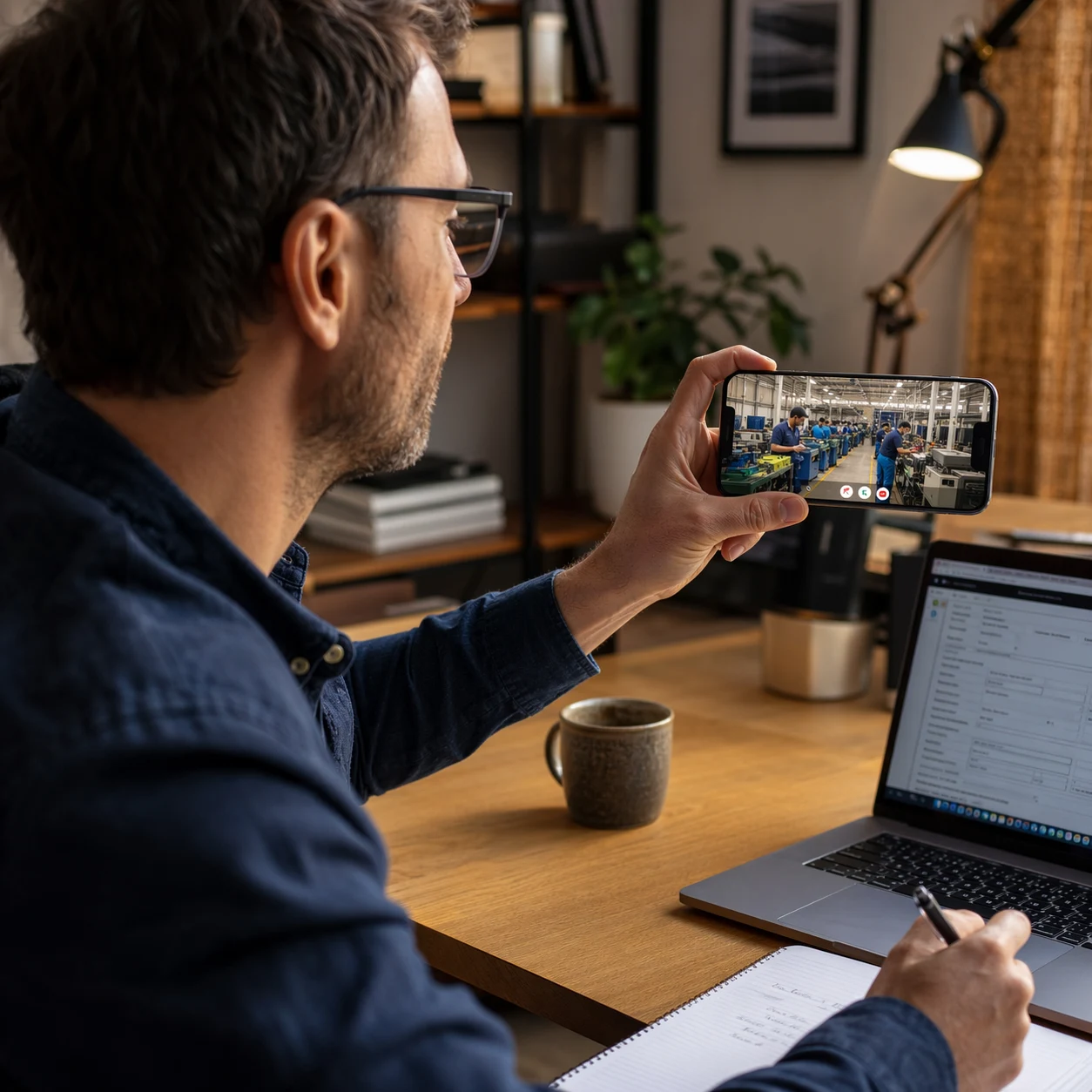 Request a live call on WeChat or WhatsApp — not a pre-recorded tour. Give 24-48 hours' notice during Chinese business hours. Ask them to walk from the front gate to the production floor without cutting the video. A real factory has connected spaces; a trading company borrowing a facility will fumble this transition.